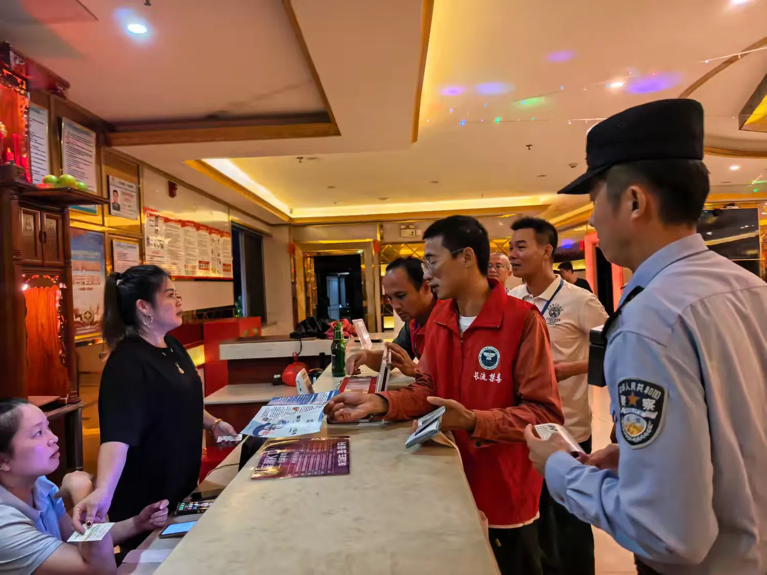 11月8日,长流镇在辖区娱乐场所开展禁毒宣传教育活动。