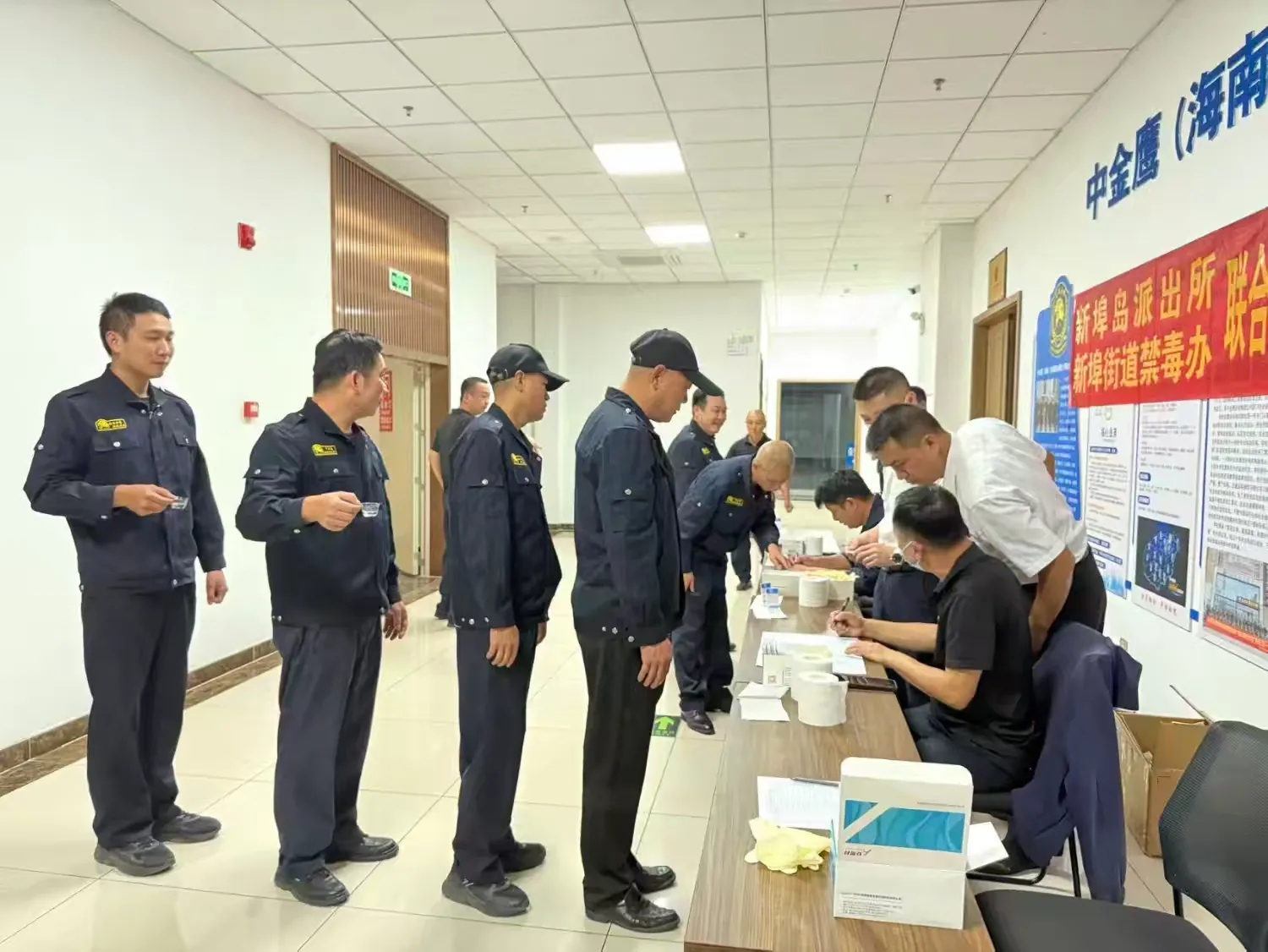 工作人员向安保人员详细介绍毒品的种类、外观特征,揭示新型毒品的伪装,强调麻精药品滥用的危害性和法律后果,同时对安保人员进行尿液检测,通过尿液检测监测安保人员的涉毒情况,杜绝“毒瘤”侵入安保队伍。