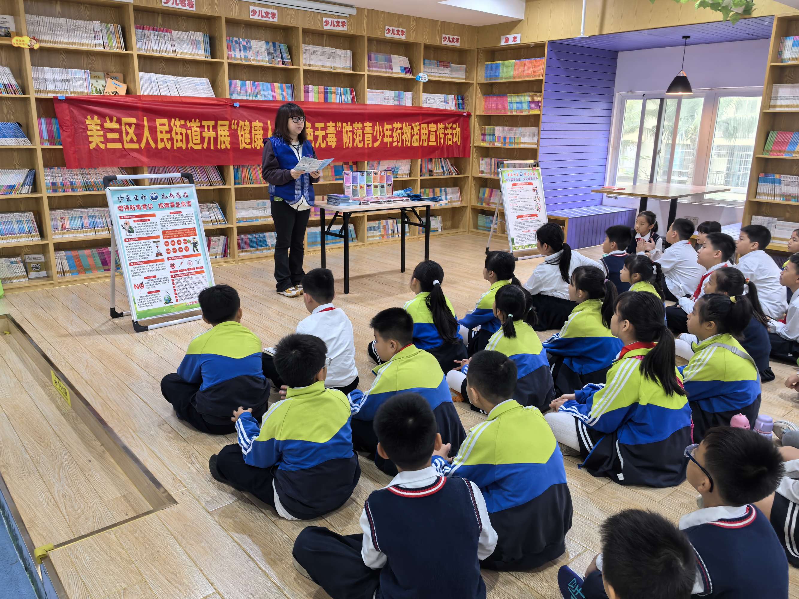 12月1日上午,人民街道在海口市第二十五小学海甸校区开展“健康人生 绿色无毒”——防范青少年药物滥用宣传活动。