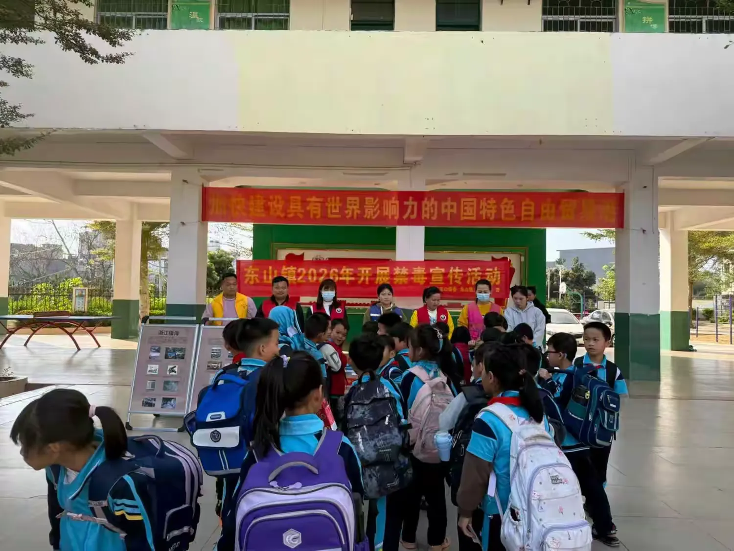 1月13日,东山镇在辖区学校开展禁毒宣传活动,帮助学生认清毒品背后的风险,构建“预防为主、宣传先行”的禁毒防线。